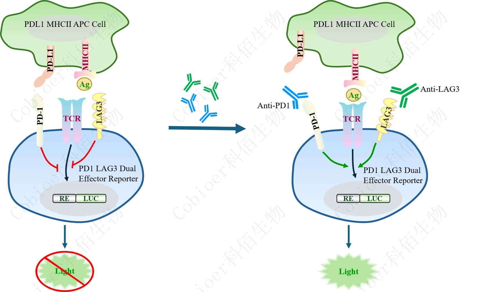 PD1 LAG3 Dual Effector Reporter Cell 報告基因藥靶模型很好的模擬了體內 PD1&LAG3 的信號轉導過(guò)程,原理見(jiàn)下圖所示。![]() Figure 1. PD1 LAG3 Dual Effector Reporter Cell 細胞模型原理圖 |