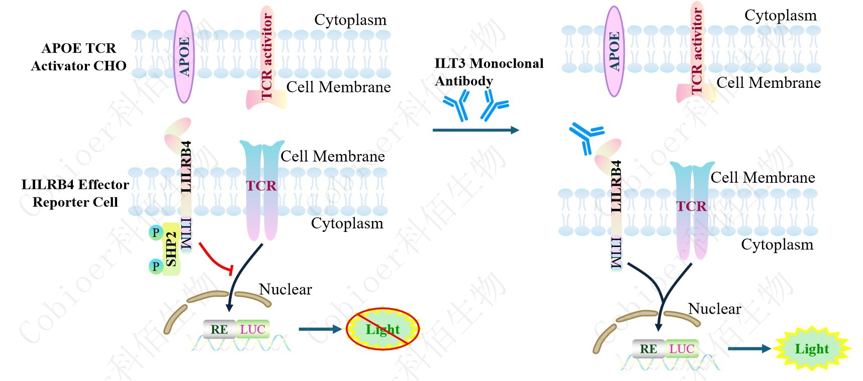 LILRB4 Effector Reporter Cell 報告基因藥靶模型很好的模擬了體內 LILRB4 的信號轉 導過(guò)程,原理見(jiàn)下圖所示。![]() ![]() Figure 1. LILRB4 Effector Reporter Cell 模型原理圖
