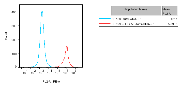 Figure 1.Recombinant HEK293 cells constitutively expressing FCGR2B(FcγRIIb). |