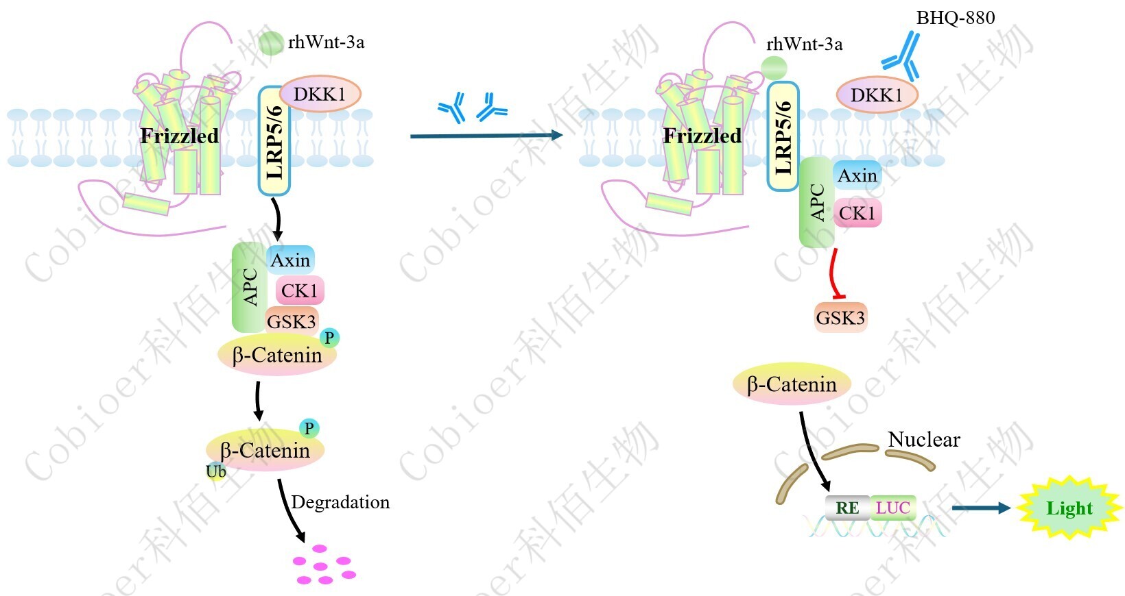 DKK1 Effector Reporter Cell 報告基因藥靶模型很好的模擬了體內 WNT 的信號轉導過(guò)程,原理見(jiàn)下圖所示。![]() Figure 1. DKK1 Effector Reporter Cell 模型原理圖 |