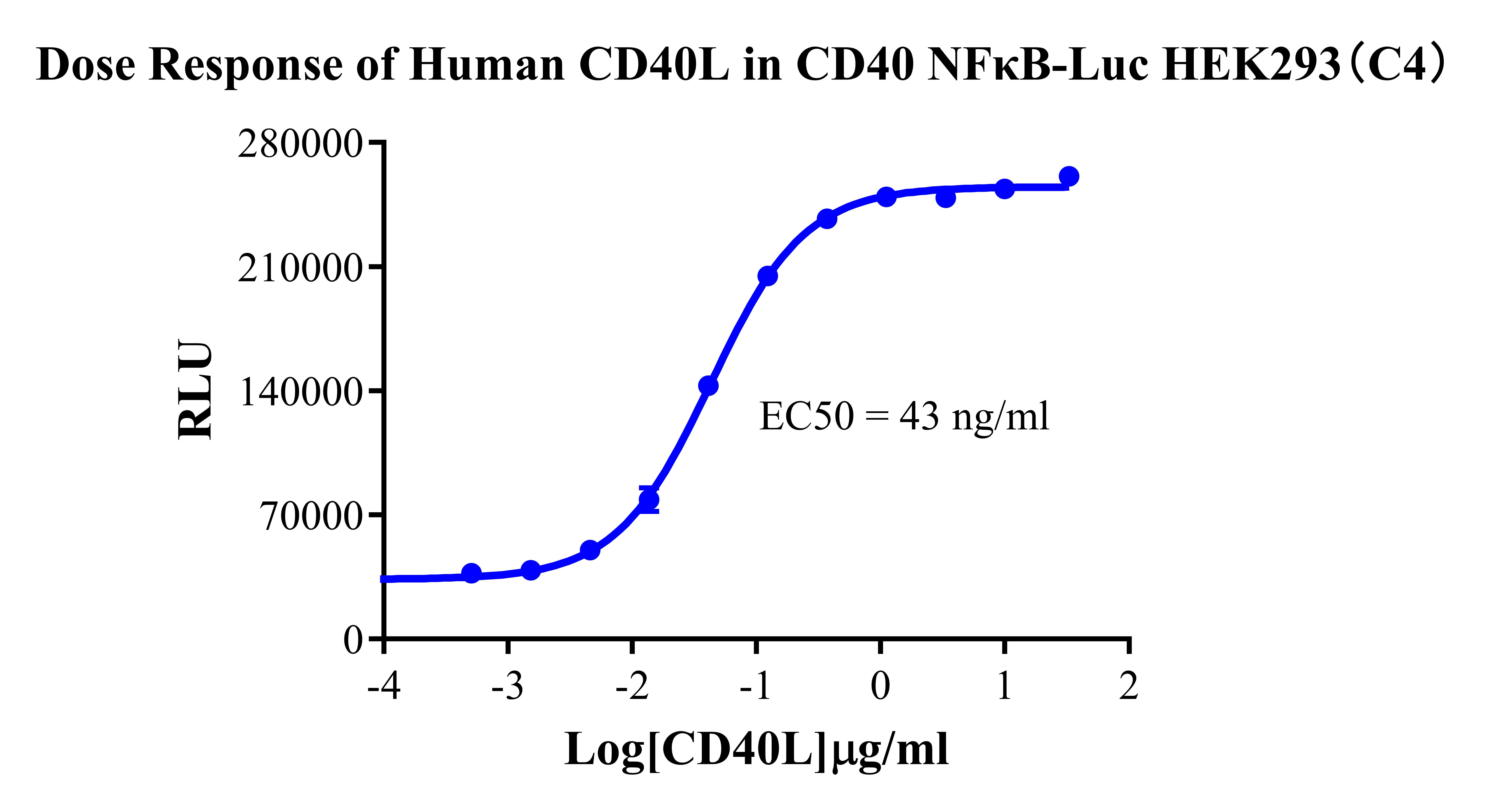 CD40 是腫瘤壞死因子受體超家族(TNFRSF)成員,作為免疫調節的關(guān)鍵分子,廣泛 參與 B 細胞活化、抗原呈遞細胞(APC)成熟及 T 細胞免疫應答。其配體 CD40L(CD154) 主要表達于活化的 T 細胞,通過(guò) CD40-CD40L 互作橋接先天性與適應性免疫,是腫瘤免疫 治療、自身免疫病及感染性疾病的熱門(mén)靶點(diǎn)。 CD40 信號轉導主要利用 TNF 受體相關(guān)因子的銜接蛋白,導致經(jīng)典和非經(jīng)典 NFκB 通 路、MAPK、PI3K 和 PLCγ的激活。它們的激活導致特征性下游效應,包括轉錄激活、細 胞骨架重排和細胞存活。 |