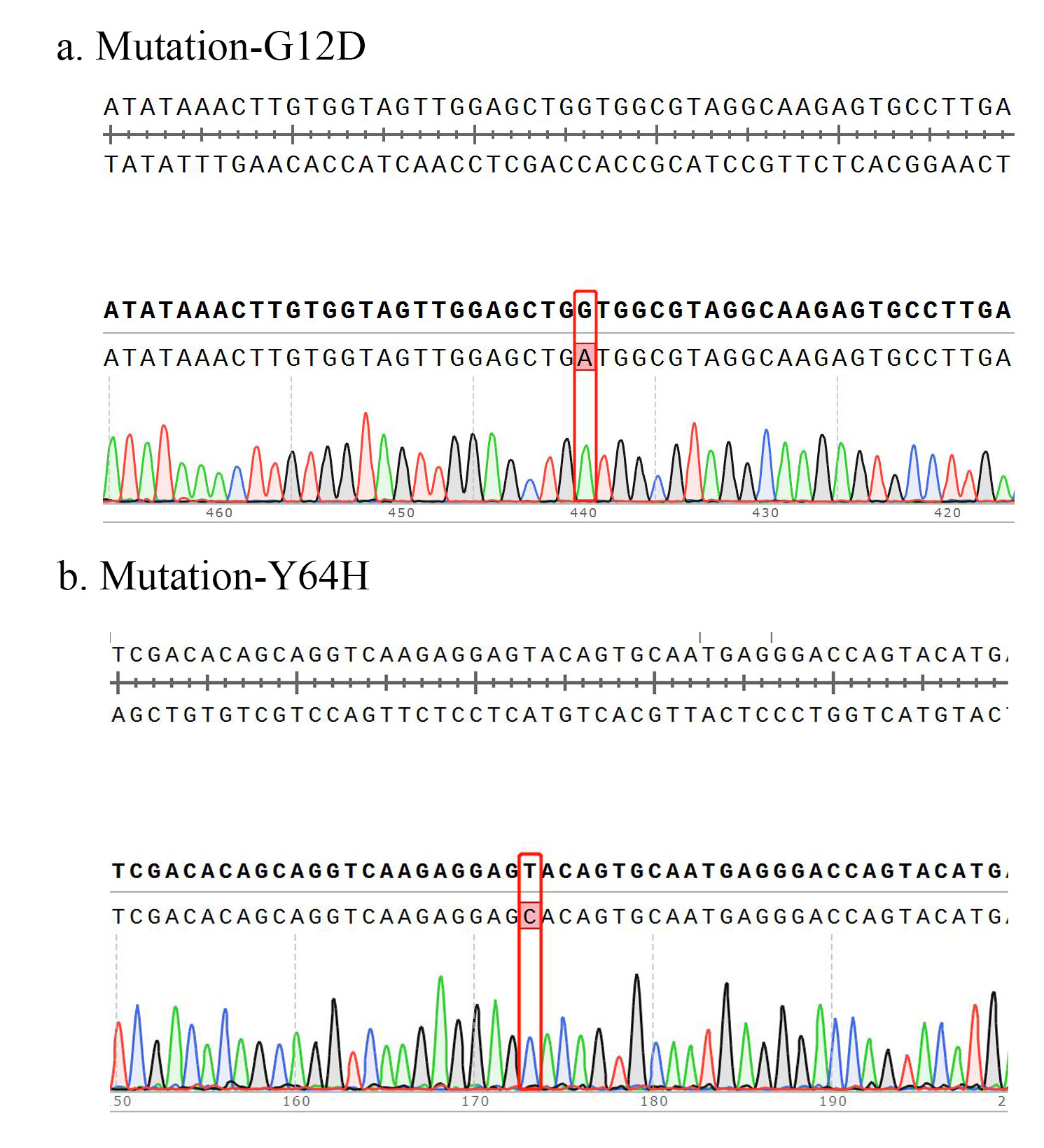1. WB of KRAS[G12D&Y64H] BaF3 Figure 3. Sanger of KRAS[G12D&Y64H] BaF3 |