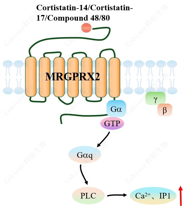 MRGPRX2 Gα15 HEK293 細胞藥靶模型很好的模擬了體內 MRGPRX2&Gα15 的信號轉 導過(guò)程,原理見(jiàn)圖所示。
