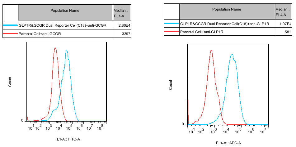 GLP1R&GCGR Dual Reporter Cell 報告基因藥靶模型很好的模擬了體內 GLP1R&GCGR 的信號轉導過(guò)程,原理見(jiàn)圖 1 所示。