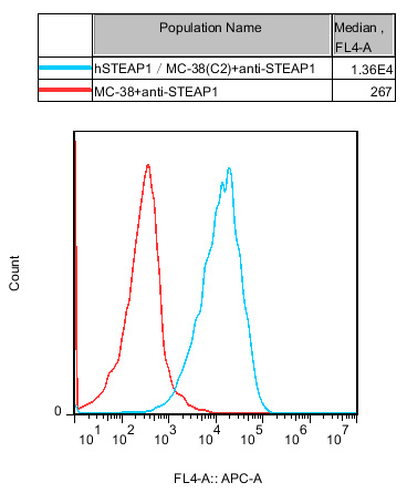 前列腺六跨膜上皮抗原 1(STEAP1),又稱(chēng)為 PRSS2,一種六次跨膜蛋白,具有 N 端和 C 端均在細胞內的結構,屬于 STEAP 家族,該家族還包含成員 STEAP1B、STEAP2、 STEAP3、STEAP4。其中,STEAP1B 是 STEAP1 的截短同源物,是一個(gè)四次跨膜蛋白。 STEAP1 在前列腺上皮細胞中高表達,但在其他正常組織中表達較低,在前列腺癌、膀胱 癌、肺癌、乳腺癌等多種癌癥中高表達。STEAP1 參與細胞內的氧化還原反應,可能在鐵 代謝和細胞增殖中發(fā)揮作用。 | |