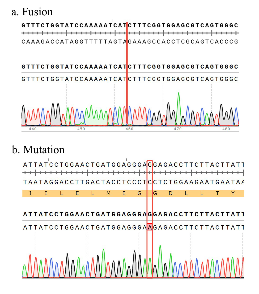 1.WB of CD74-ROS1 [G2032R] BaF3 Figure 2. WB of CD74-ROS1 [G2032R] BaF3. 2.Sanger of CD74-ROS1 [G2032R] BaF3 |