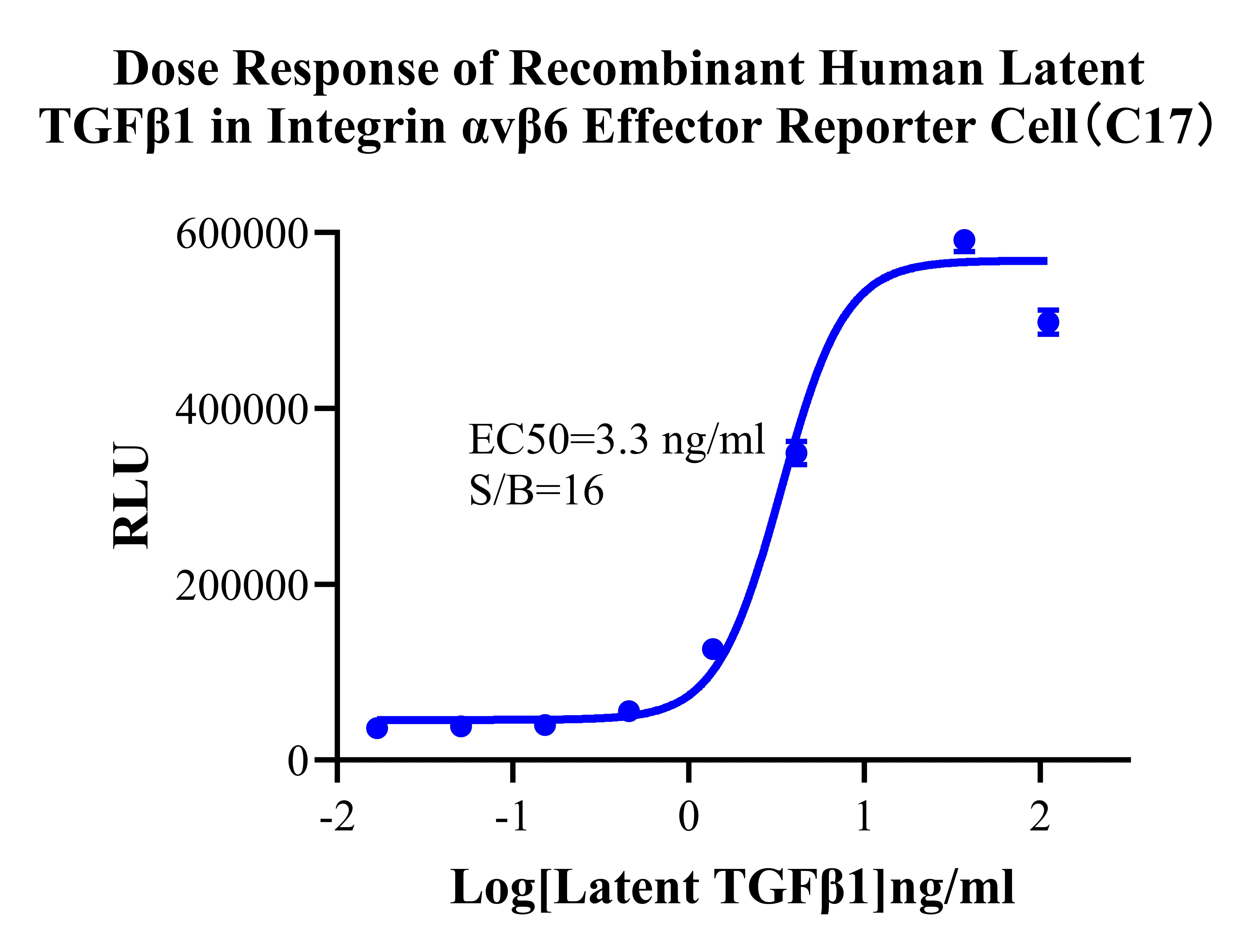 IV. Representative Data![]() Figure 2. Recombinant Integrin avβ6 Effector Reporter Cell stably expressing ITGB6&ITGAV. ![]() Figure 3. Dose Response of Recombinant Human Latent TGFβ1 in Integrin avβ6 Effector Reporter Cell (C17). ![]() Figure 4. Inhibition of Human Latent TGFβ1-induced Reporter Activity by Integrin avβ6 Blocking Antibody in Integrin avβ6 Effector Reporter Cell(C17). ![]() |