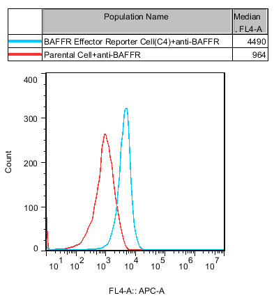 BAFFR Effector Reporter Cell 報告基因藥靶模型很好的模擬了體內 BAFF 的信號轉導過(guò)程,原理見(jiàn)下圖所示。![]() Figure 1. BAFFR Effector Reporter Cell 細胞模型原理圖 |