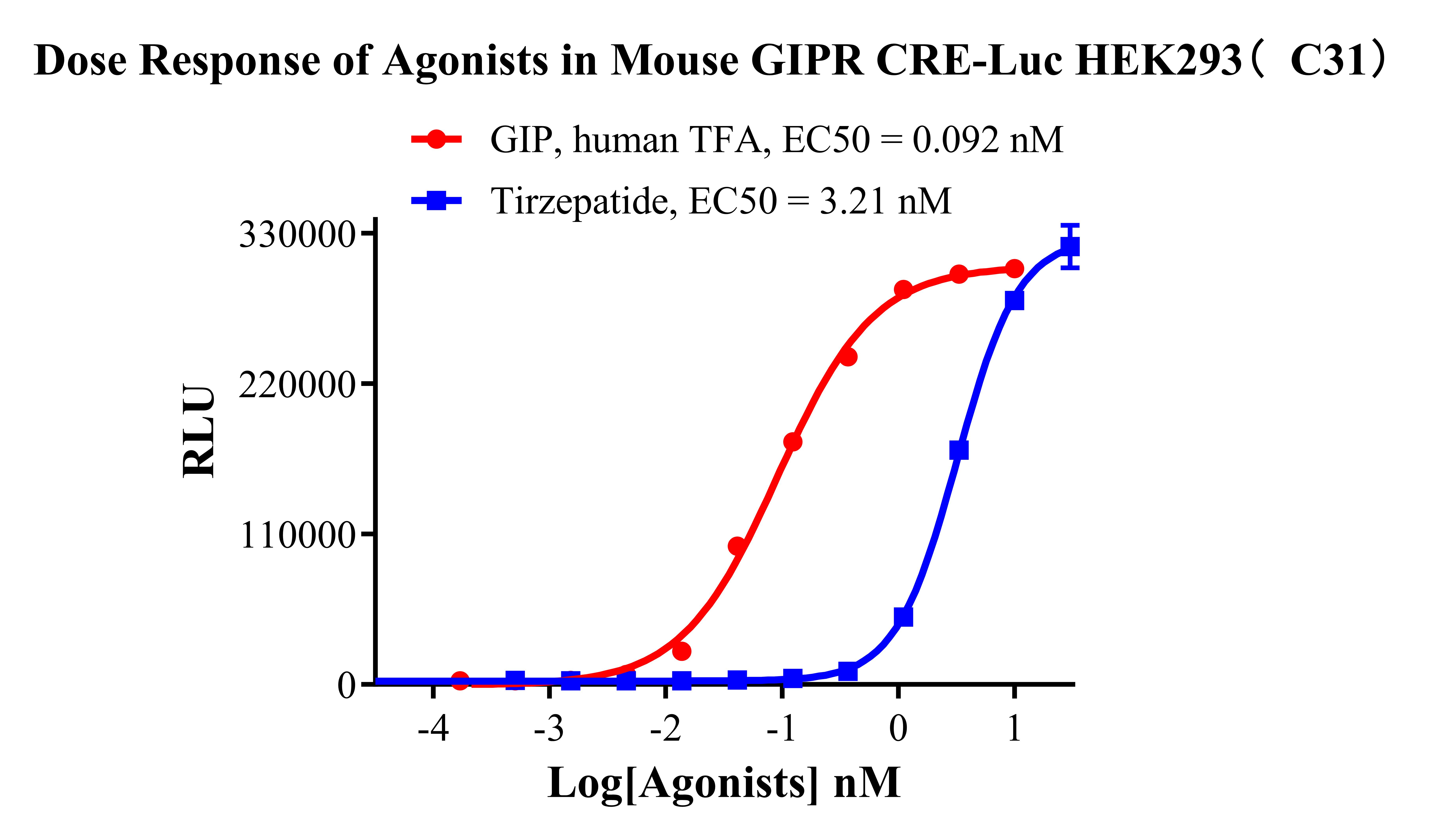 Figure 2. Dose Response of Agonists in Mouse GIPR CRE-Luc HEK293(C31). |