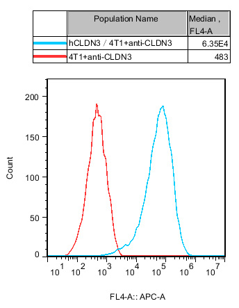 IV. Representative Data![]() Figure1.Recombinant hCLDN3/4T1 stably expressing hCLDN3. |