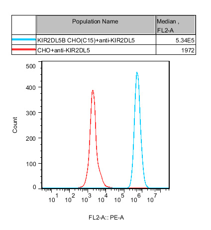 KIR2DL5B CHO 細胞, 在 CHO-K1 細胞的基礎上 ,穩定表達人 KIR2DL5B。 | |