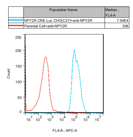 NPY2R CRE-Luc CHO 藥靶模型很好的模擬了體內 NPY2R 的信號轉導過(guò)程,原理見(jiàn)下圖所示。![]() Figure 1. NPY2R CRE-Luc CHO 細胞模型原理圖 |