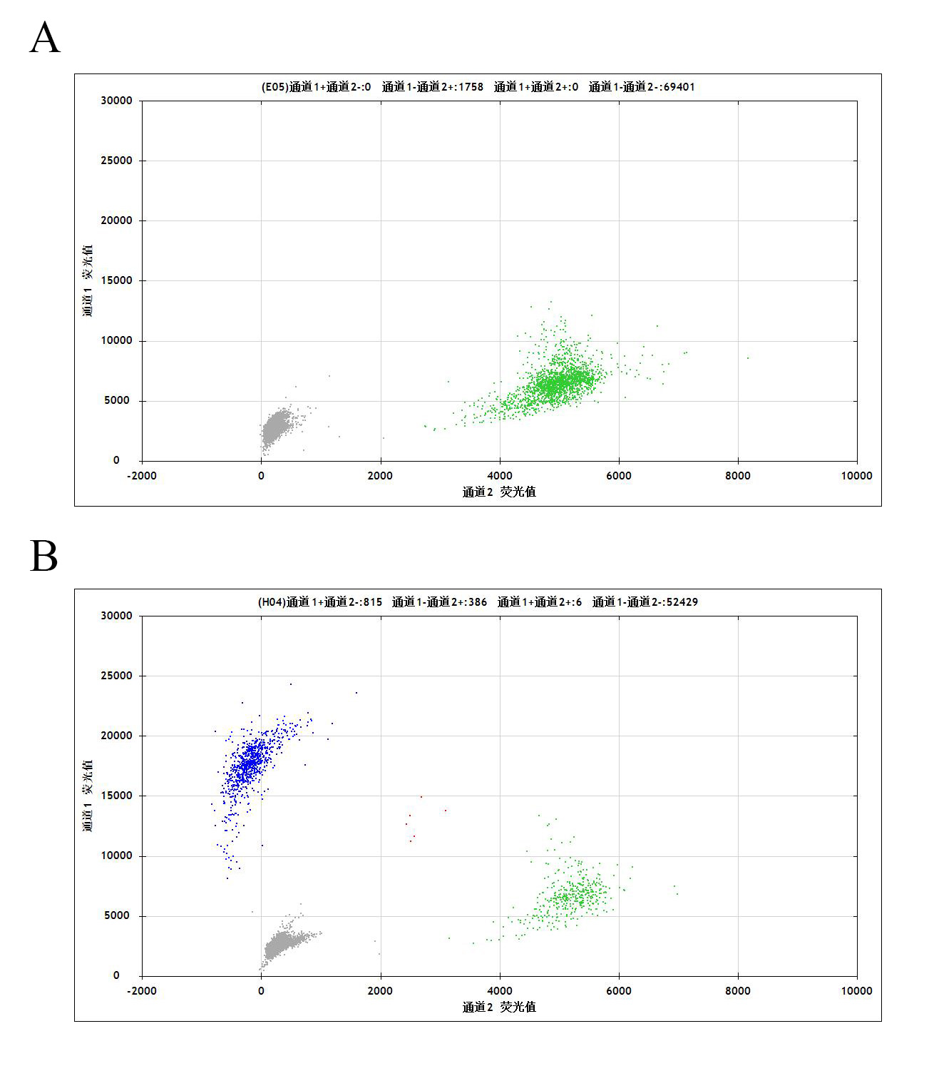 ![]() Figure 2. Sanger of ESR1[Y537N](Heterozygous,AF%:66.7)Isogenic MCF7 ![]() Figure 3. A: MCF7 Parental Cell;B:ESR1[Y537N](Heterozygous,AF%:66.7) Isogenic MCF7 通道2 藍色微滴代表ESR1[Y537N]突變陽(yáng)性,通道2 綠色微滴代表該位點(diǎn)為陰性野生型 ![]() Figure 4. CTG Proliferation Assays of ESR1 [Y537N](Heterozygous, AF%:66.7) 1sogenic MCF7(C40C20). |