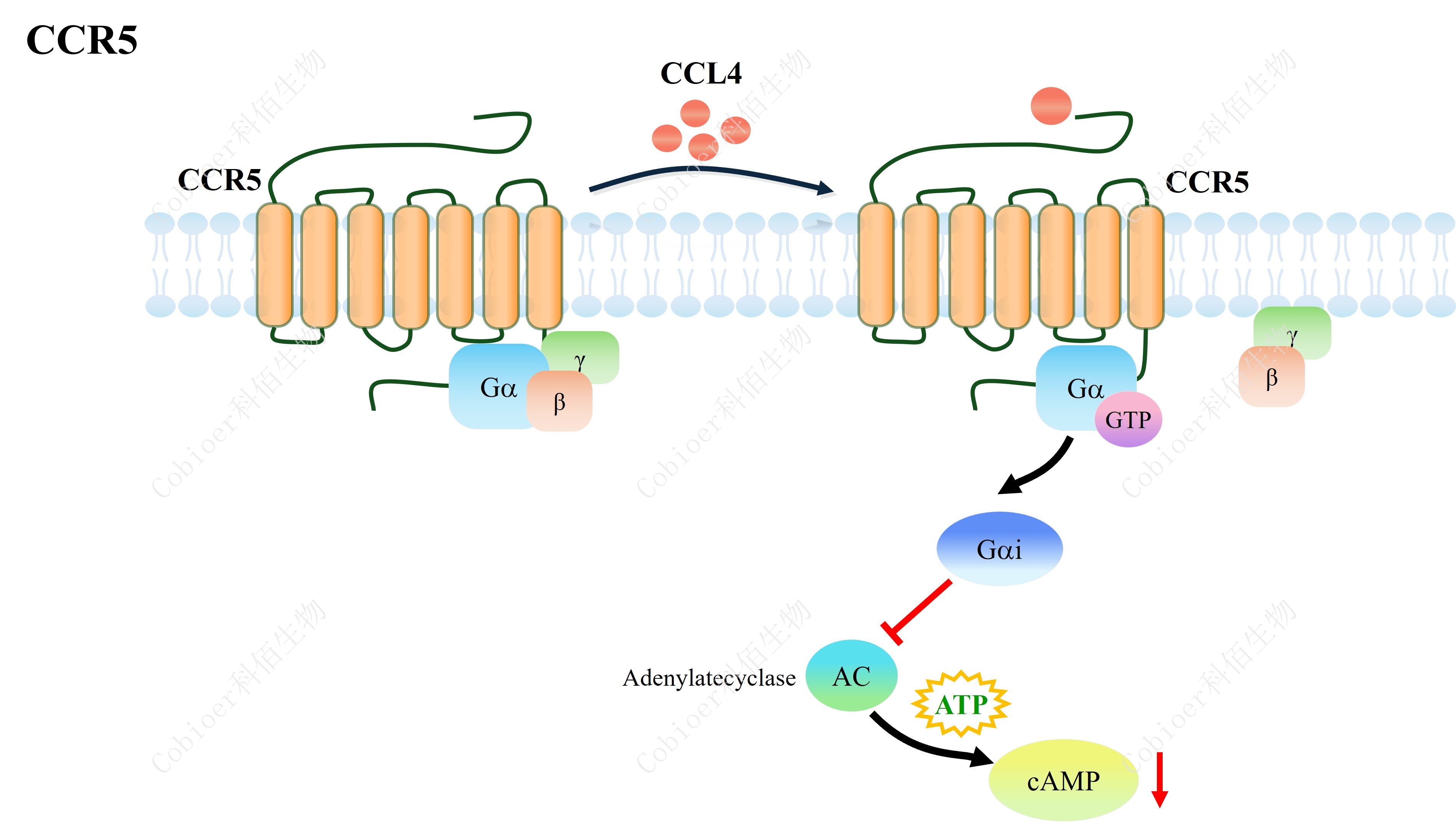 cAMP 在 G 蛋白偶聯(lián)受體(GPCR)信號轉導中是一種關(guān)鍵的第二信使。當配體結合到 GPCR,構象發(fā)生變化,激活受體接著(zhù)激活G蛋白,Gi的激活導致腺苷酸環(huán)化酶調控 cAMP 的下調。CCR5 藥靶模型很好的模擬了體內 CCR5 的信號轉導過(guò)程,原理見(jiàn)下圖所示。![]() Figure 1. CCR5 CHO 細胞模型原理圖