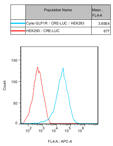 Figure 2. Recombinant Cyno GLP1R/CRE-Luc/HEK293 stably expressing Cyno GLP1R. |