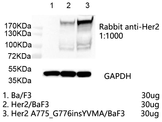 1. WB of Her2 A775_G776insYVMA/BaF3 |