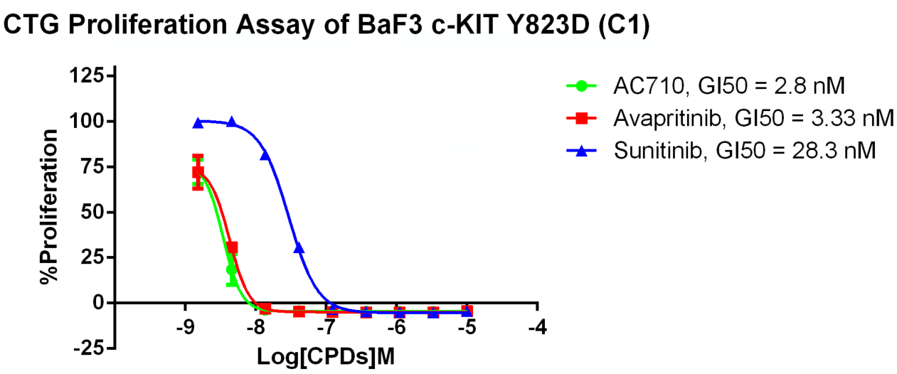 3. Anti-proliferation assay Figure 3. CTG Proliferation Assay of BaF3 c-KIT Y823D (C1). |