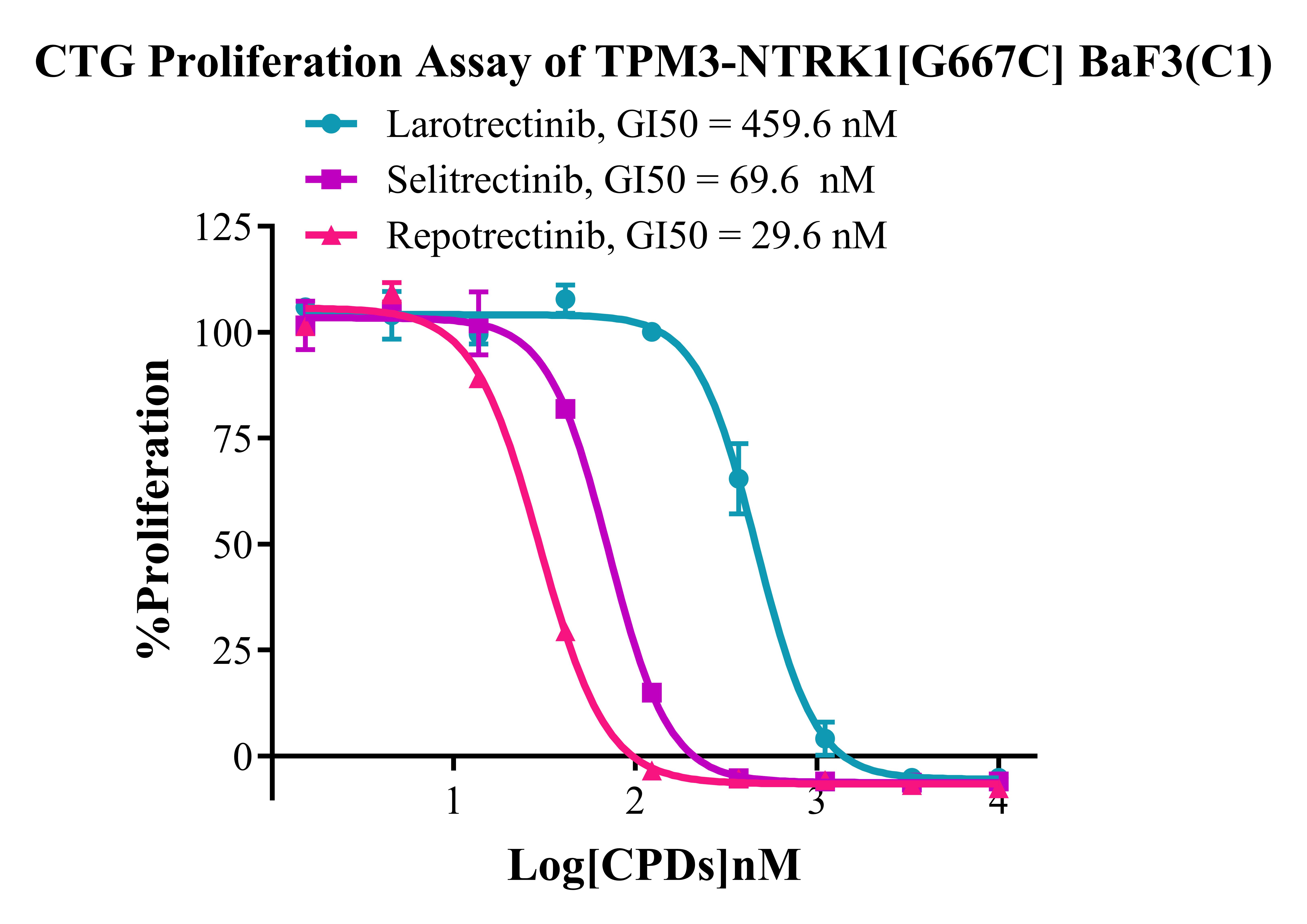 3. Anti-proliferation assay Figure 5. CTG Proliferation Assay of BaF3 TPM3-NTRK1 [G667C] BaF3 (C1). |