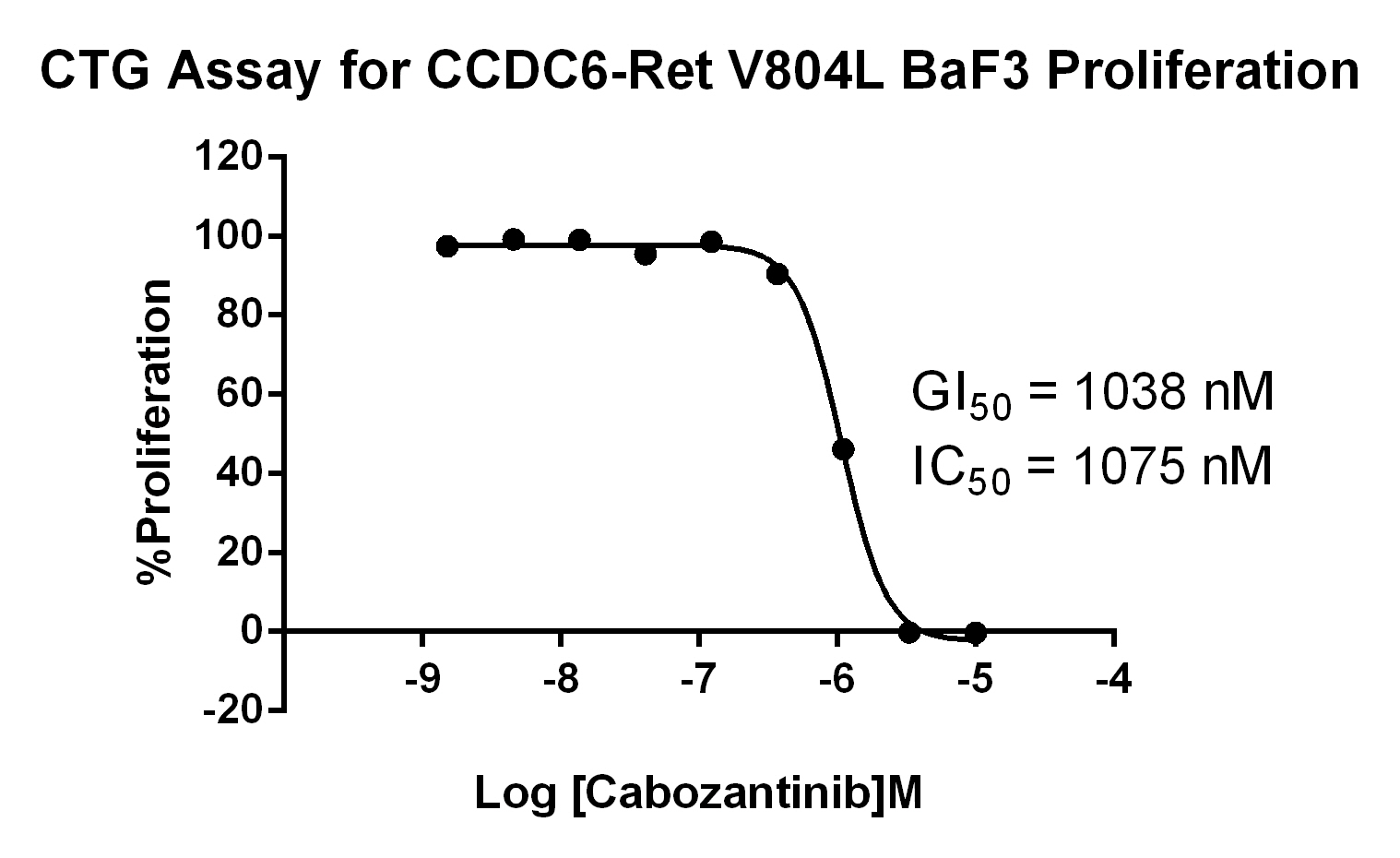 3. Anti-proliferation assay Figure 4. Anti-proliferation assay of one reference compounds on the CCDC6-RET V804L/BaF3 Stable Cell Line. |