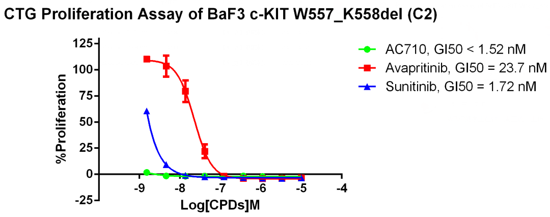 3. Anti-proliferation assay Figure 3. CTG Proliferation Assay of BaF3 c-KIT W557_ K558del (C2). |