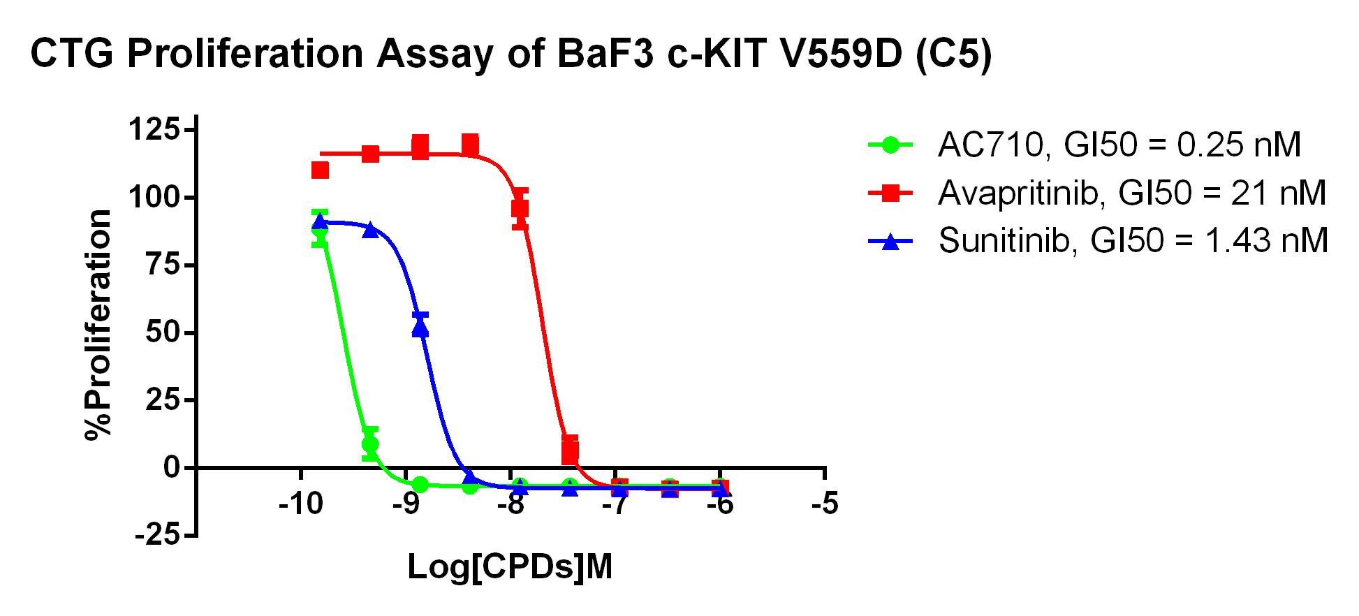 3. Anti-proliferation assay Figure 2. CTG Proliferation Assay of BaF3 c-KIT V559D (C5). |