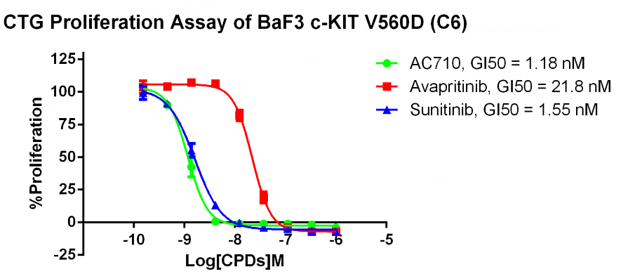 3. Anti-proliferation assay Figure 3. CTG Proliferation Assay of BaF3 C-KIT V560D (C6). |