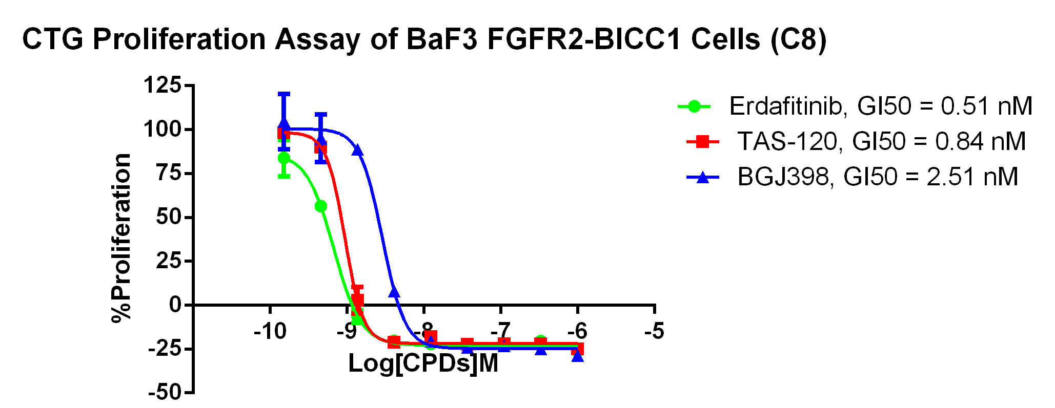 3. Anti-proliferation assay Figure 3. CTG Proliferation Assay of BaF3 FGFR2-BICC1 Cells (C8). |