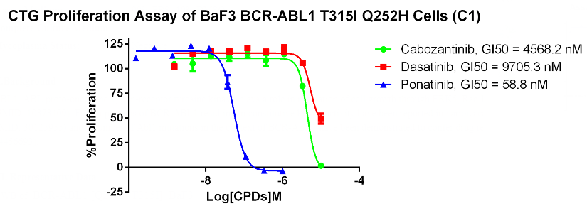 3. Anti-proliferation assay Figure 5 .CTG Proliferation Assay of BaF3 BCR-ABL1 T315I Q252H Cells (C1). |