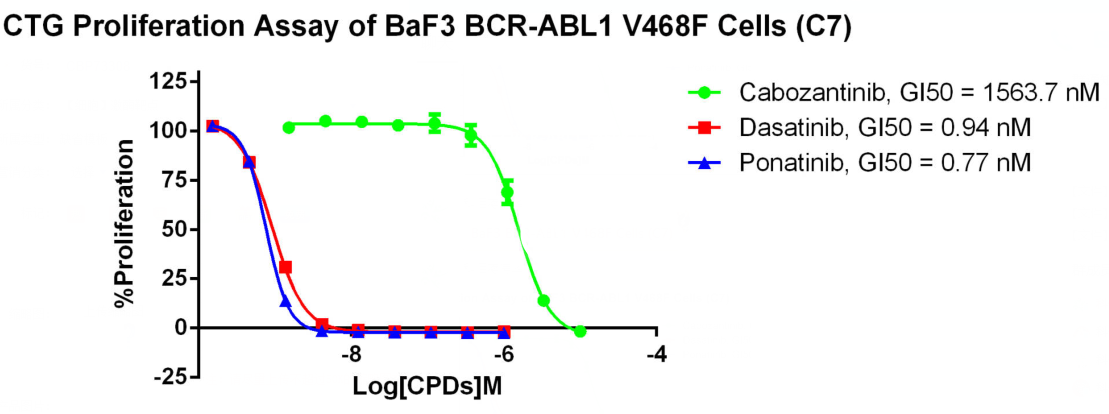 Figure 4. CTG Proliferation Assay of BaF3 BCR-ABL1 V468F Cells (C7).