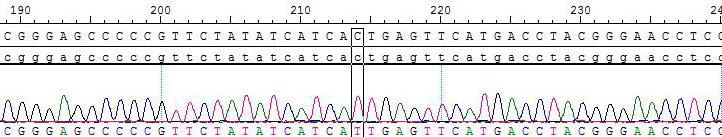 2. Sanger of BCR-ABL1 [F359V/T315I]/BaF3 Figure 2. BCR-ABL1 [F359V/T315I]/BaF3 F359V Figure 3. BCR-ABL1 [F359V/T315I]/BaF3 T315I Figure 4. BCR-ABL1 [F359V/T315I]/BaF3 Fusion |