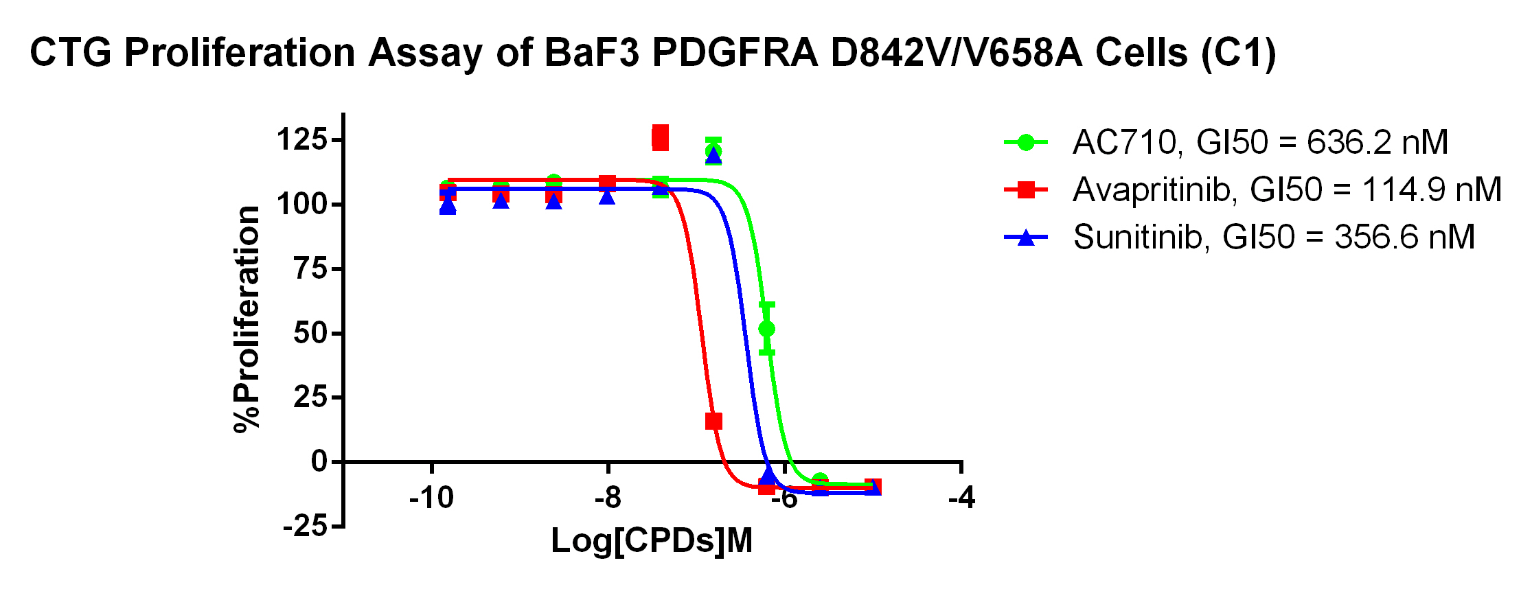 Figure 3. CTG Proliferation Assay of BaF3 PDGFRA D842V/V658A Cells (C1). |