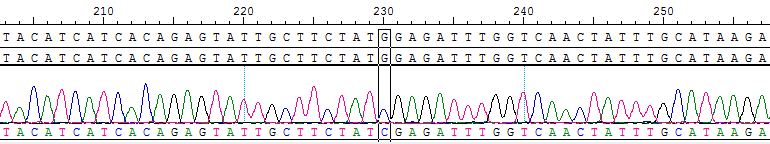 1.Sanger of PDPDGFRA D842V-G680R/BaF3 Figure 1. PDGFRA D842V-G680R/BaF3 G680R Figure 2. PDGFRA D842V-G680R/BaF3 D842V |