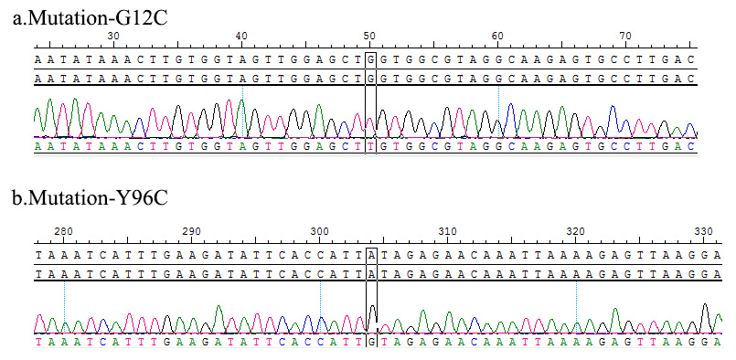 1.Sanger of KRAS G12C-Y96C/BaF3 Figure 2. Sanger of KRAS G12C-Y96C/BaF3 |
