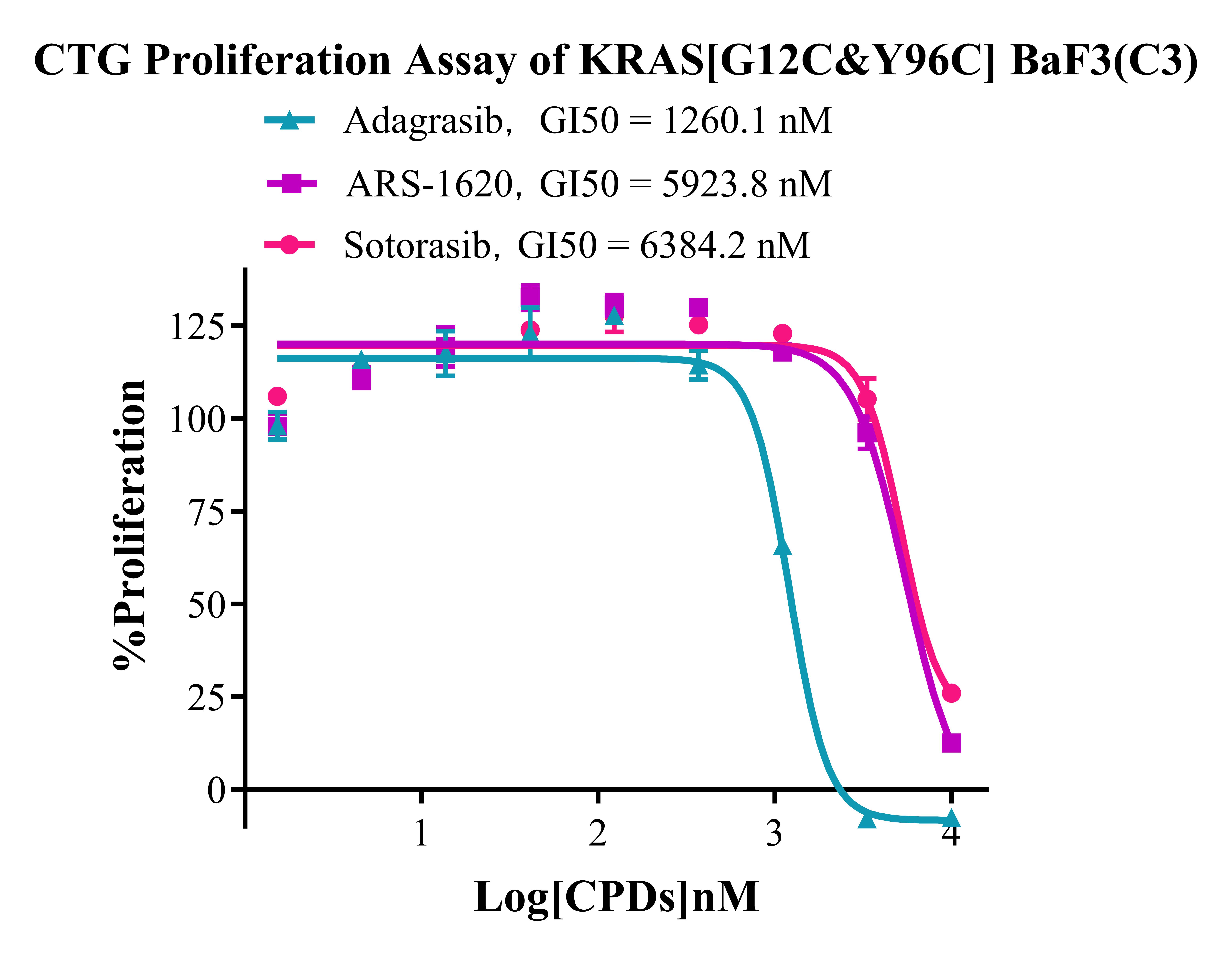 3. Anti-proliferation assay Figure 3. CTG Proliferation Assay of KRAS [G12C&Y96C] BaF3(C3). |
