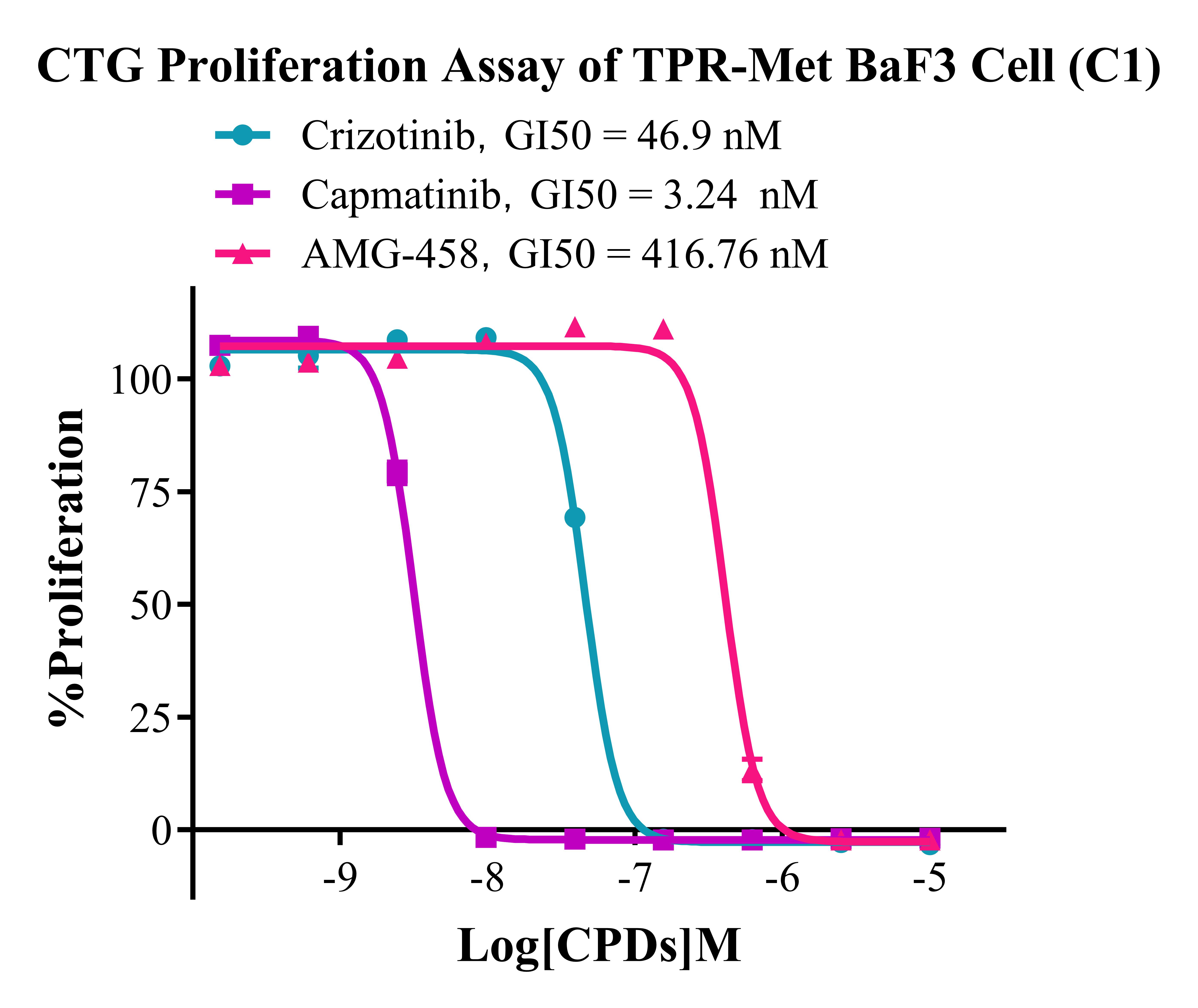 3. Anti-proliferation assay Figure 4. CTG Proliferation Assay of TPR-Met BaF3 Cell (C1). |