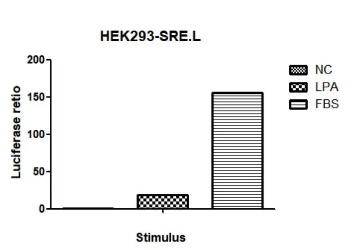 The SRE Reporter – HEK293 cell line is designed for monitoring the activity of the MAPK/ERK signaling pathway. The SRE Reporter – HEK293 cell line contains a firefly luciferase gene under the control of SRE responsive elements stably integrated into HEK293 cells, resulting in an ERK pathway-responsive reporter cell line. | |