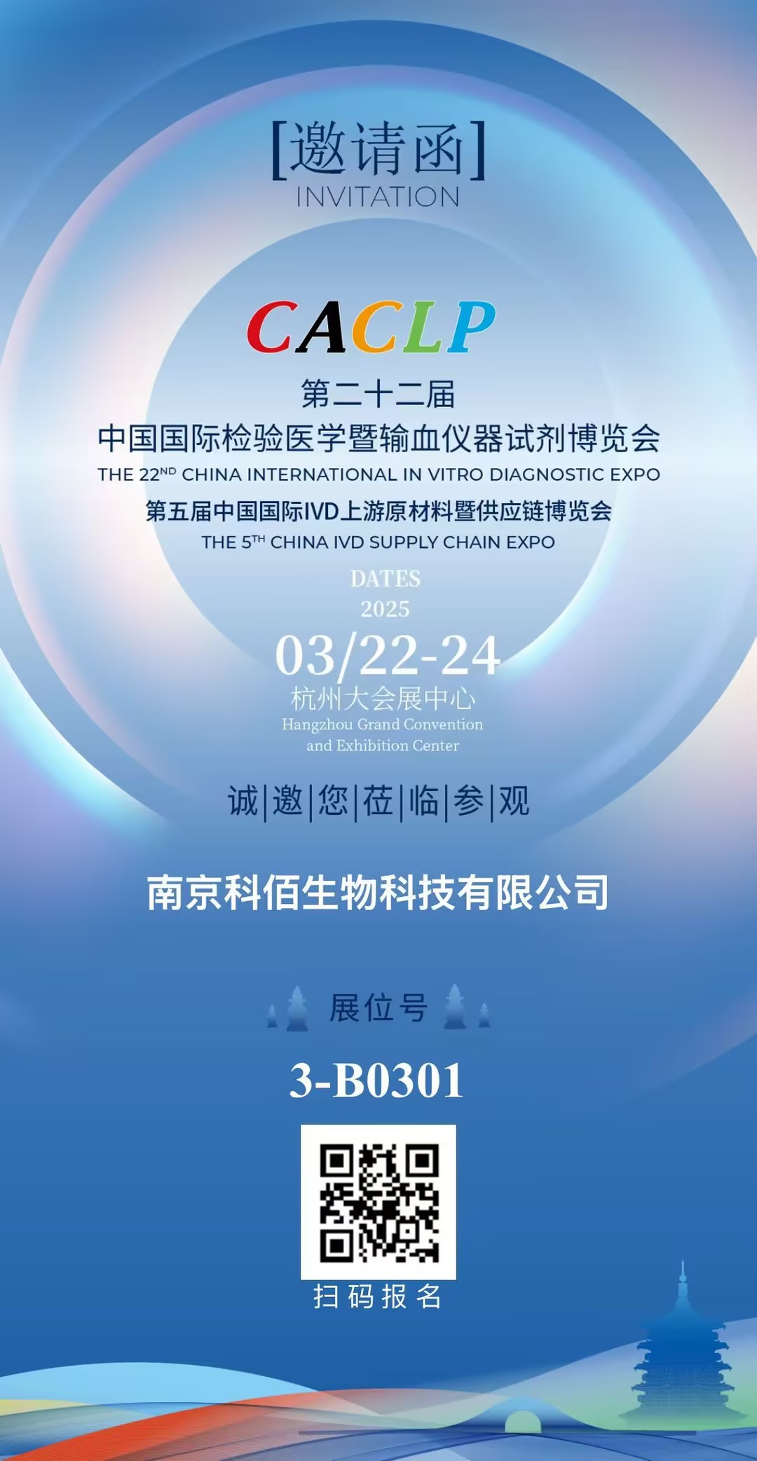 由智奧瑞和(上海)展覽有限公司主辦的第二十二屆中國國際檢驗醫學(xué)暨輸血儀器試劑博覽會(huì )(CACLP)、第五屆中國國際IVD上游原材料暨供應鏈博覽會(huì )(CISCE)將于2025年3月22日至24日在杭州大會(huì )展中心隆重舉行。