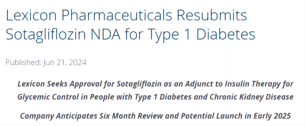 6月21日,Lexicon宣布,在與FDA進(jìn)行多次互動(dòng)并得到最近的反饋后,該公司已重新提交了索格列凈(sotagliflozin)的新適應癥申請,作為胰島素治療的輔助藥物,用于1型糖尿病和慢性腎臟?。–KD)患者的血糖控制。