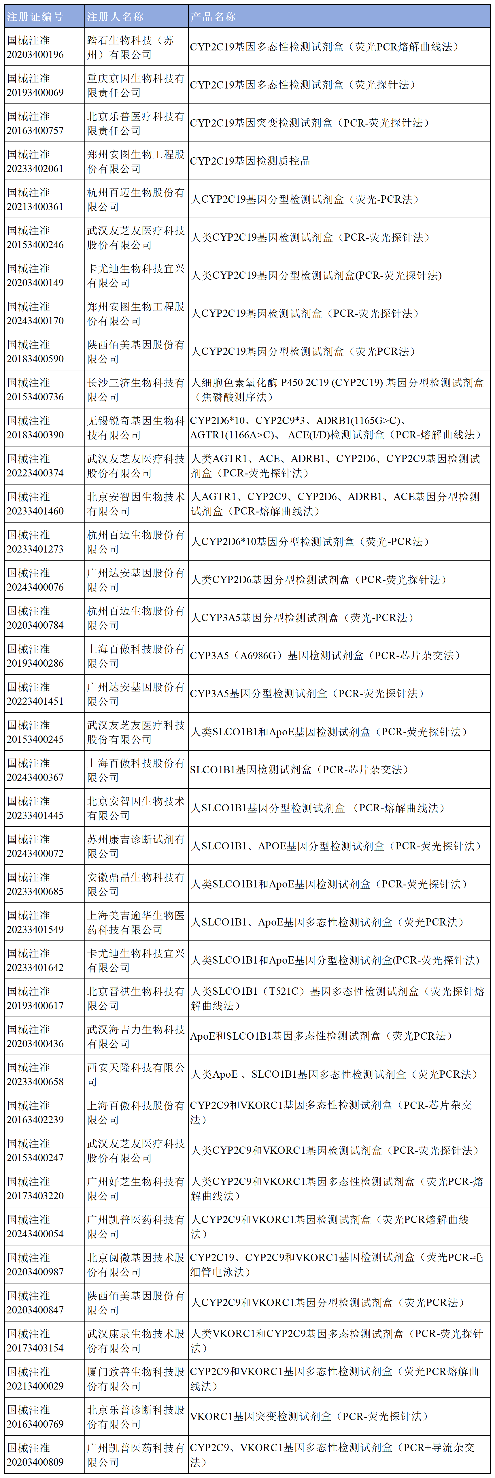 截至2023年9月,國內批準個(gè)性化用藥相關(guān)基因檢測產(chǎn)品包括CYP2C19、CYP2C9、UGT1A1、CYP2D6、ALDH2、CYP3A5、SLCO1B1、VKORC1、APOE、ACE、TOP2A、PML-RARα等標志物。檢測常用的方法有實(shí)時(shí)熒光聚合酶鏈反應(polymerase chain reaction,PCR)、PCR?電泳分析、PCR-基因芯片法、PCR-Sanger測序、熔解曲線(xiàn)法等分子生物學(xué)方法。