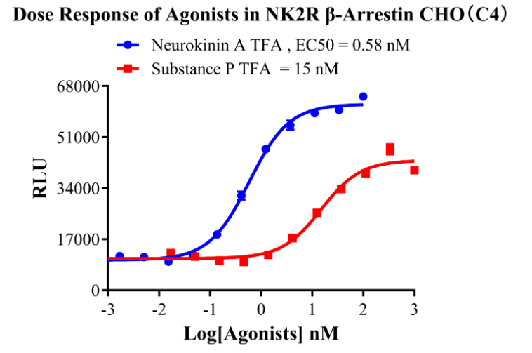 為了助力NK2R藥物的研發(fā),科佰生物及時(shí)開(kāi)發(fā)了基于IP-One信號通路的NK2R細胞模型和基于β-Arrestin信號通路的細胞模型,用于候選藥物早期機理研究。