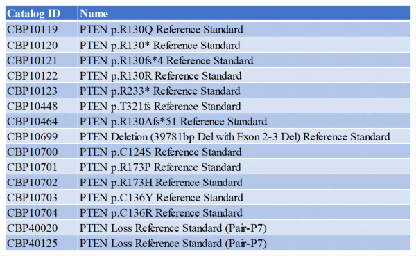 科佰生物可以提供PTEN突變類(lèi)型的診斷標準品,保證診斷方法的檢測限、靈敏度、穩定性。