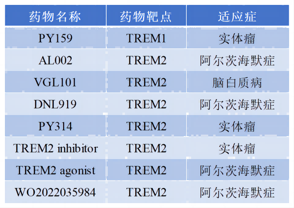 目前,針對TREM1和TREM2的研究主要集中在癌癥和阿爾茨海默癥領(lǐng)域。TREM1抑制劑可作為治療慢性炎癥和癌癥的潛在治療策略,TREM2則在阿爾茨海默癥的發(fā)展中起著(zhù)關(guān)鍵作用,被確定為治療靶點(diǎn)。