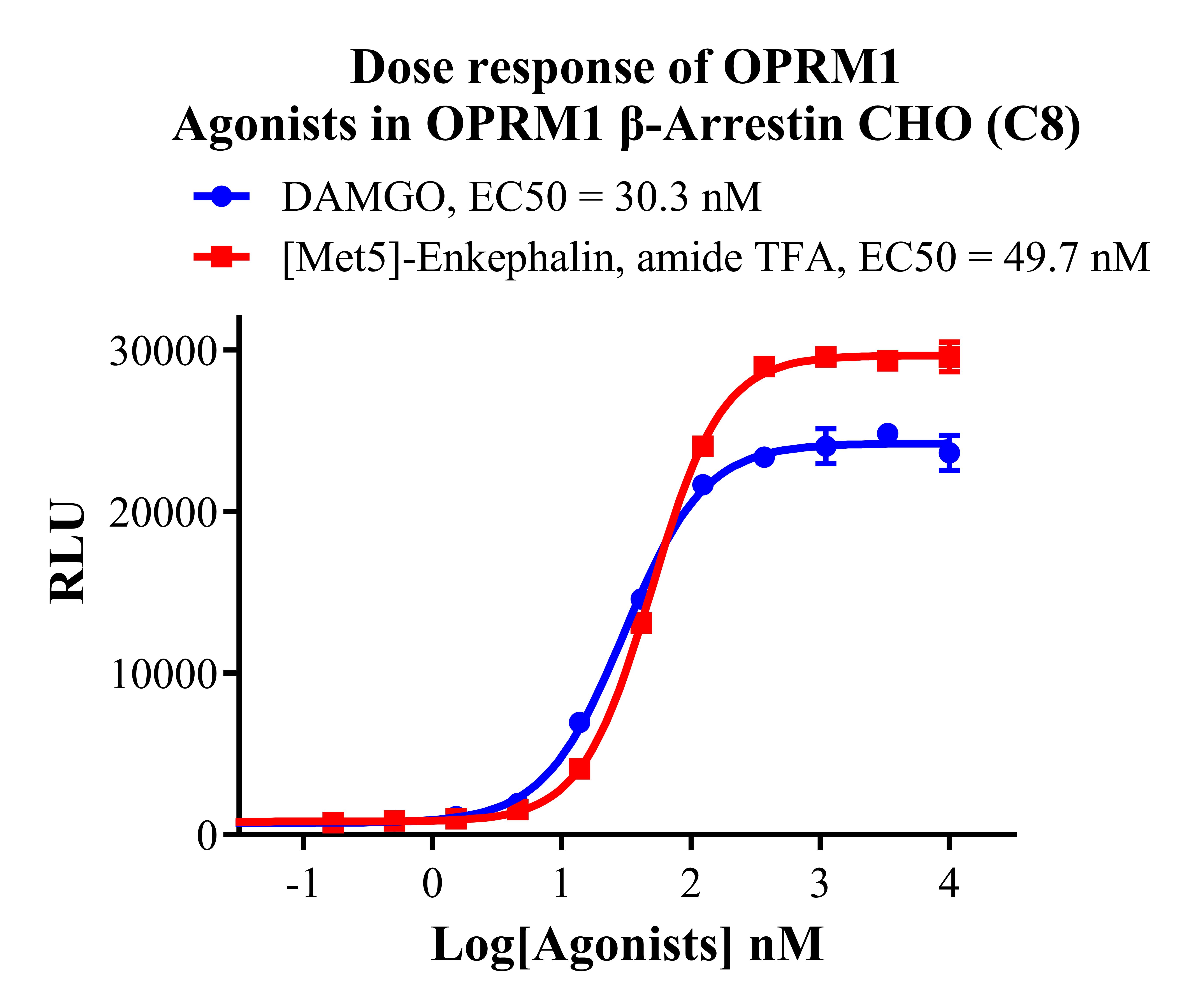 Figure 8. Dose response of OPRM1 Agonists in OPRM1 β-Arrestin CHO(C8).